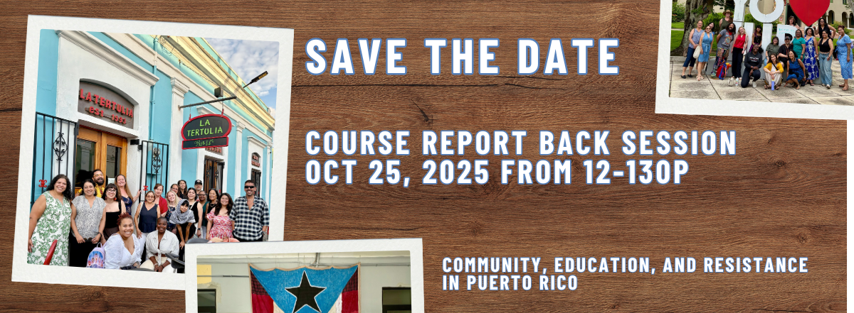 12:00 – 1:30 PM – Lunch & Course Report Back Session: Community, Education, and Resistance in Puerto Rico